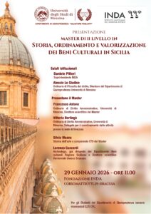 E’ in programma giovedì 29 gennaio, a partire dalle 11 nel salone Amorelli di Palazzo Greco, sede della Fondazione INDA, la presentazione del Master di II livello in Storia, Ordinamento e Valorizzazione dei Beni culturali in Sicilia.